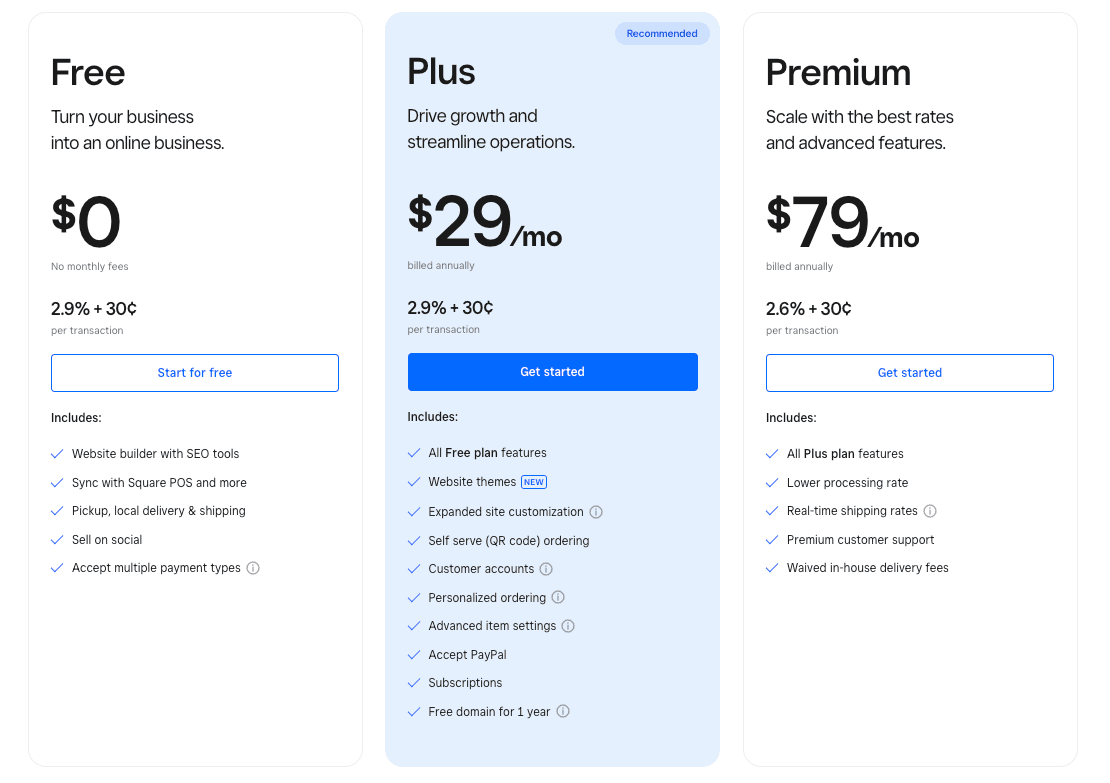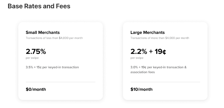 Square: Square offers one processing plan to all their businesses with the following rates:
