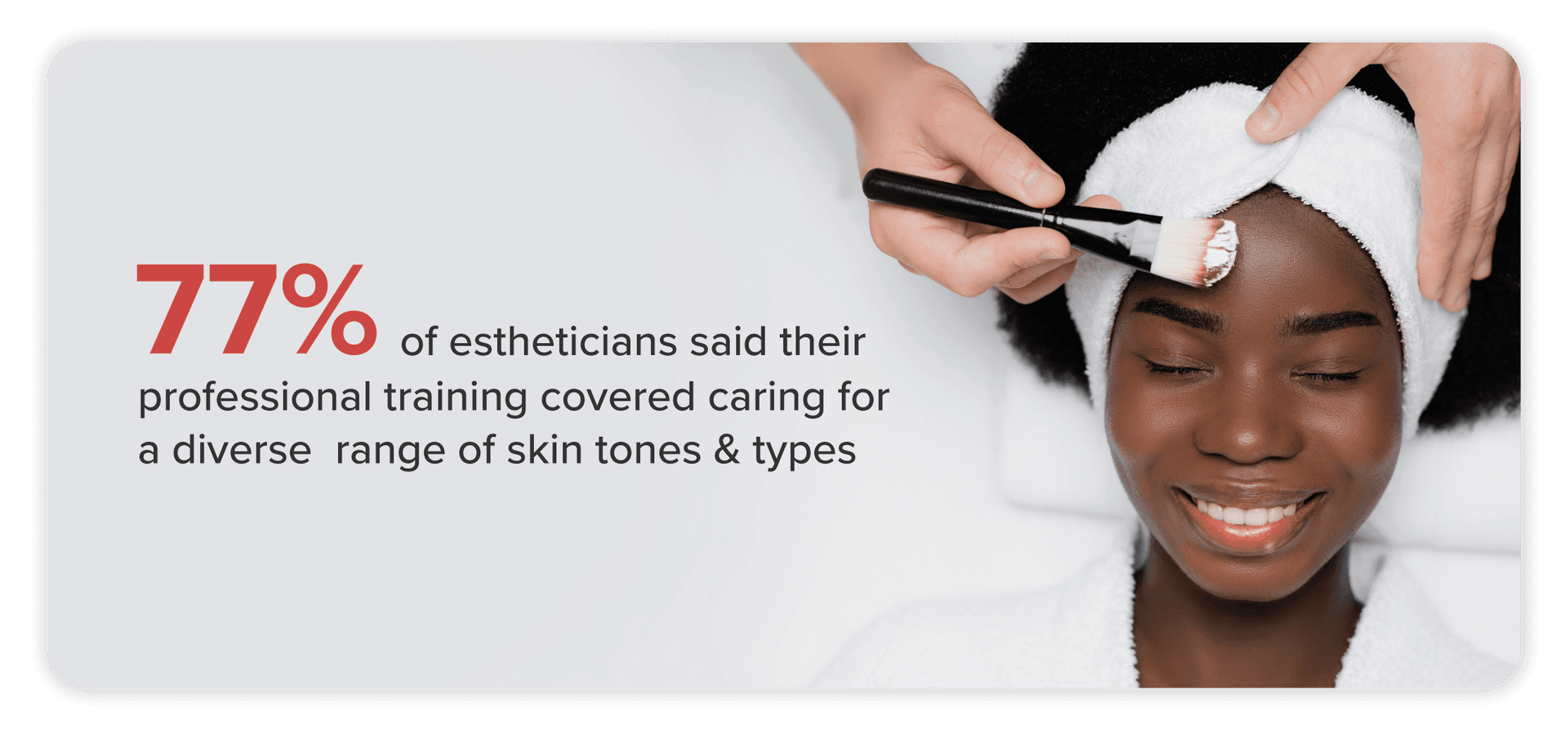 77% of respondents answered yes when asked if they were trained to care for a range of skin tones & types.