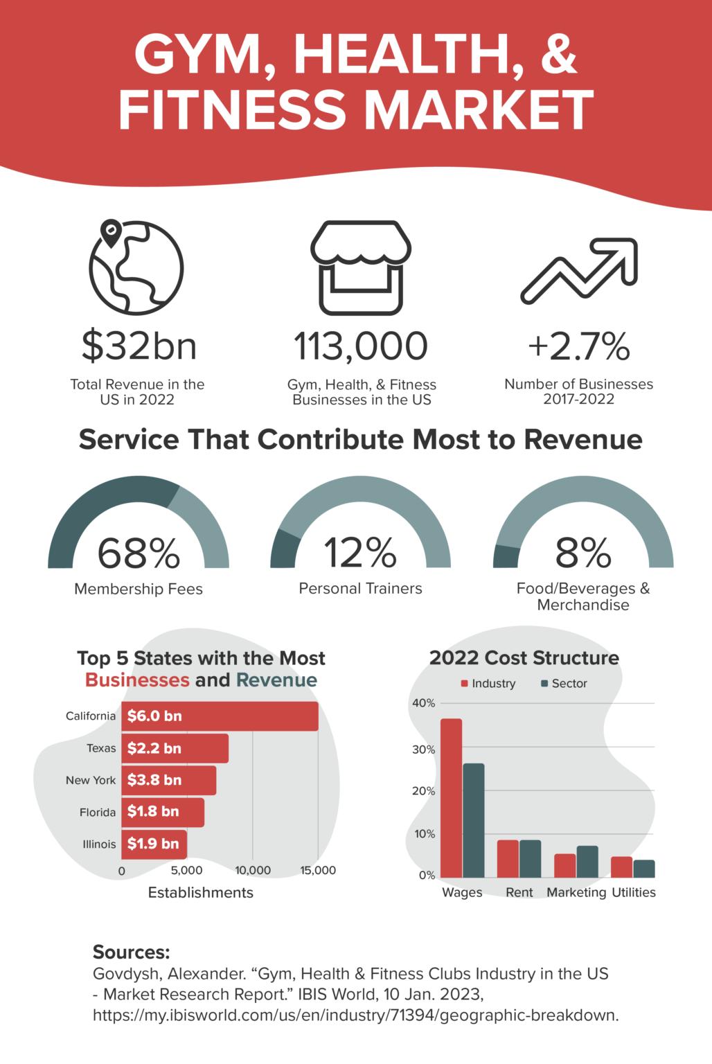 Growth in the Gym, Health & Fitness Market continues to trend upwards. How far up? According to IBIS WORLD, there were 113,000 fitness businesses in the U.S. alone in 2022—up nearly 3% over the last five years—which generated $32 billion in revenue in 2022. This translates to many opportunities for future personal trainers and fitness studio owners. You may be wondering, what exactly is driving fitness industry growth?