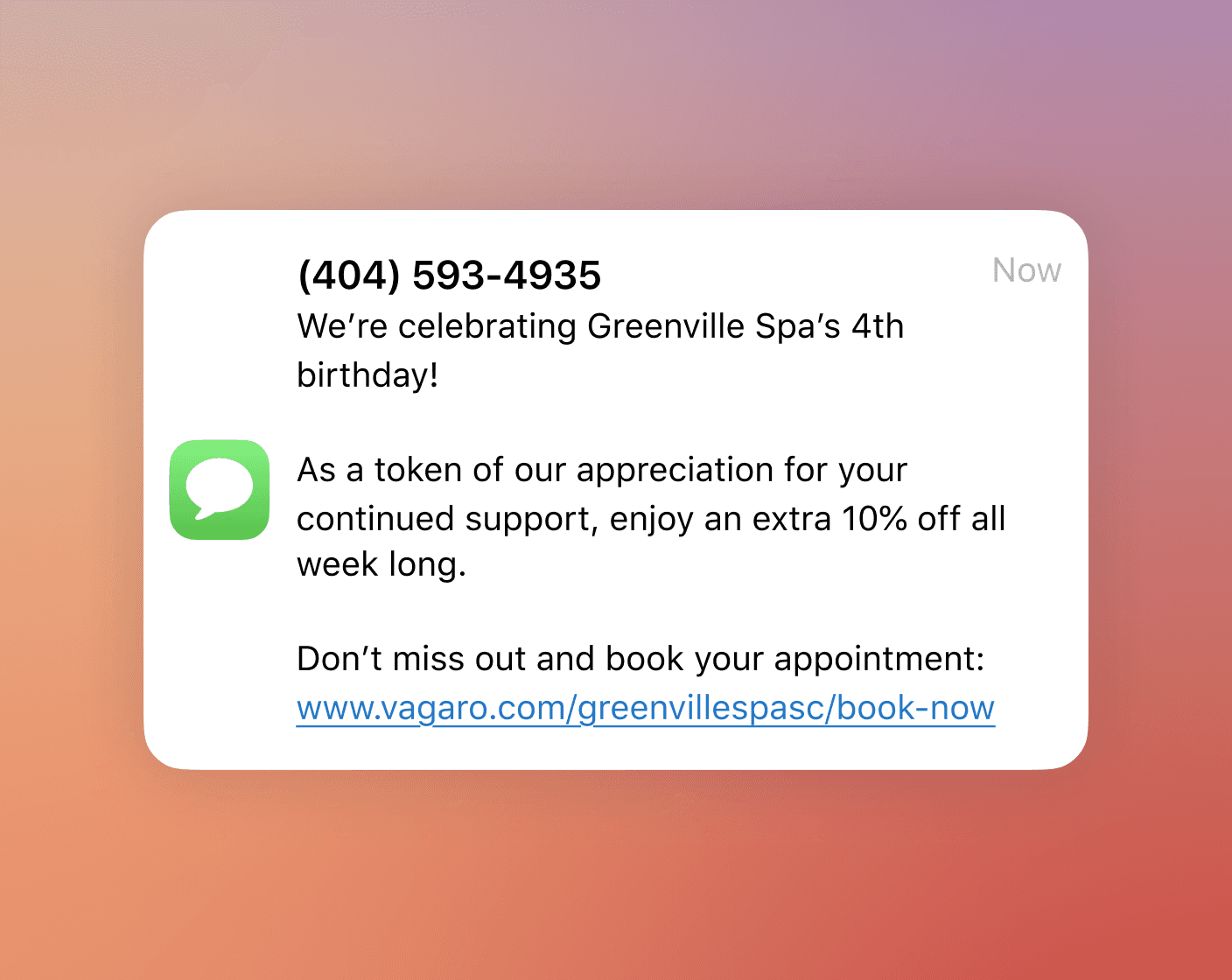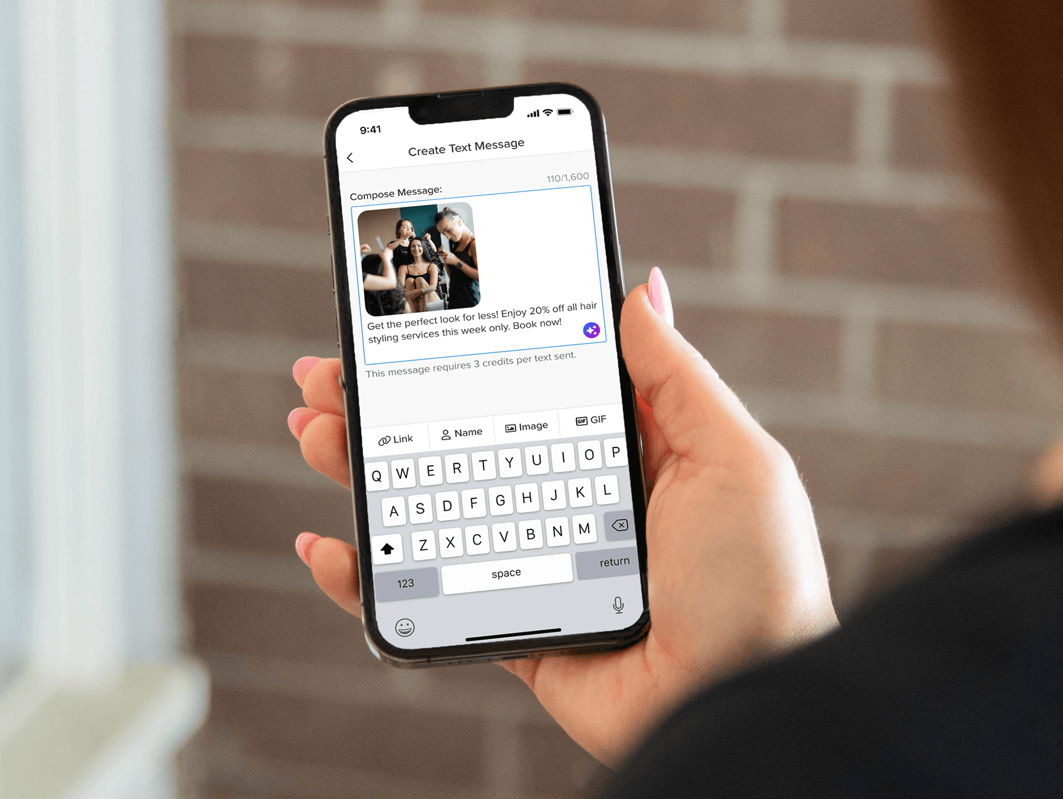 Easily reach clients where they are with targeted text blasts, promotions, exclusive deals, last-minute specials, and more.